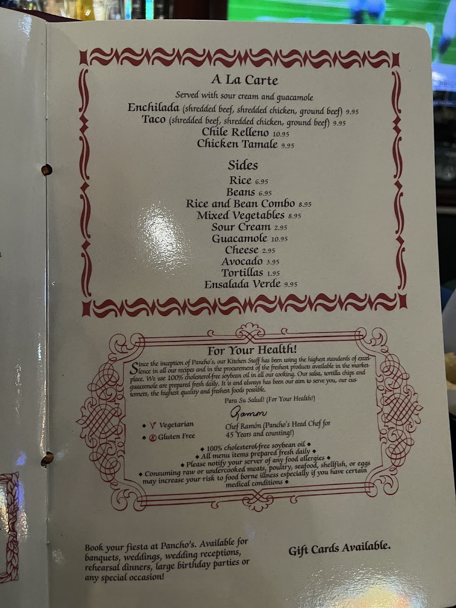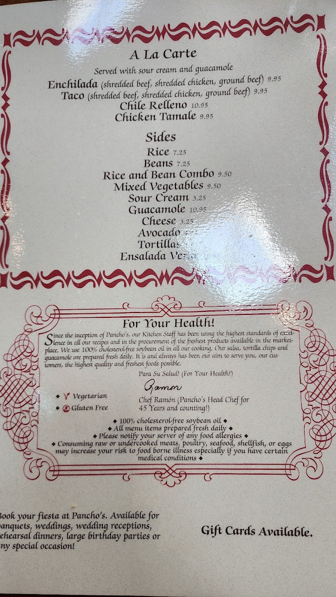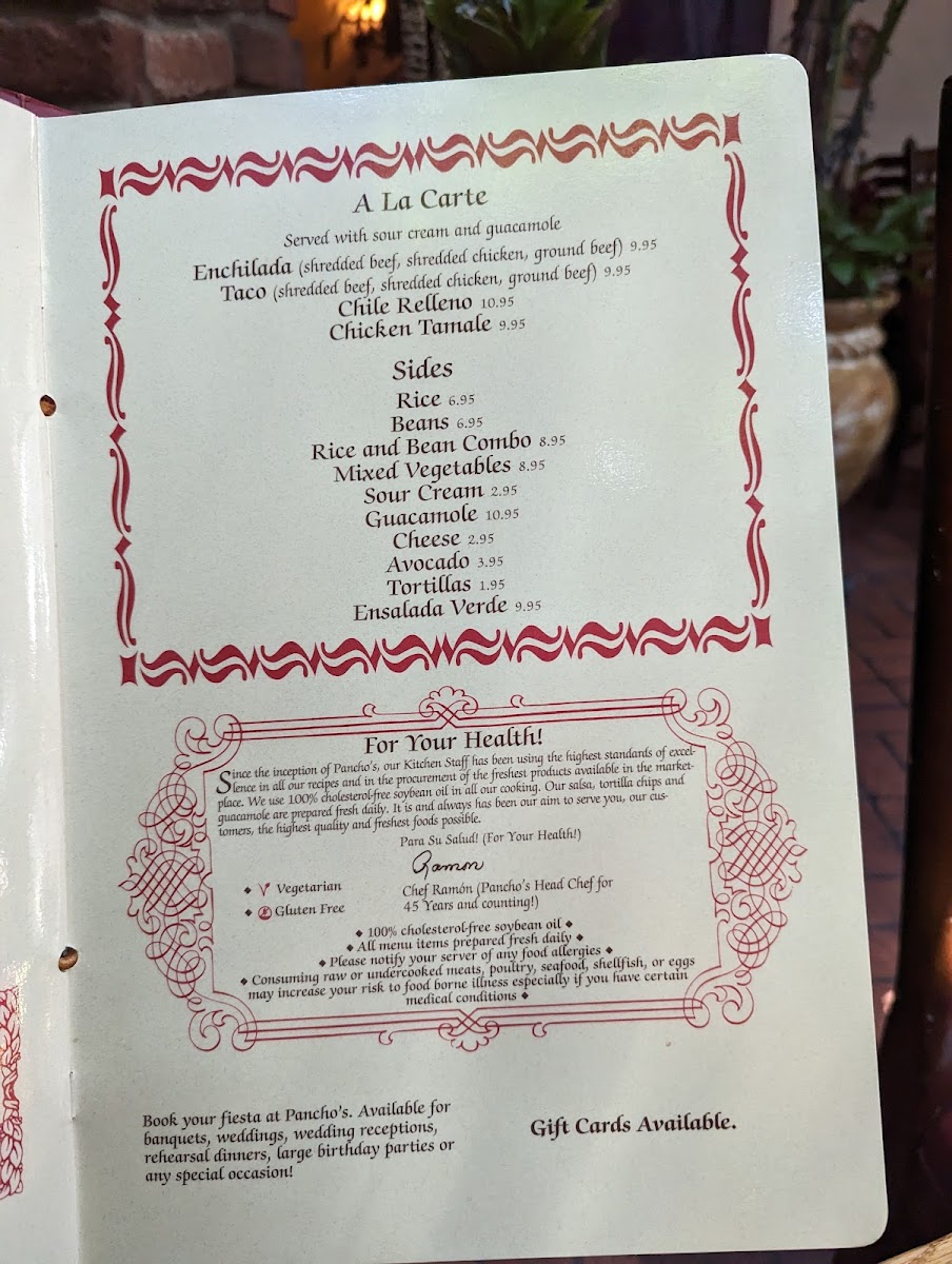 Pancho's Menu