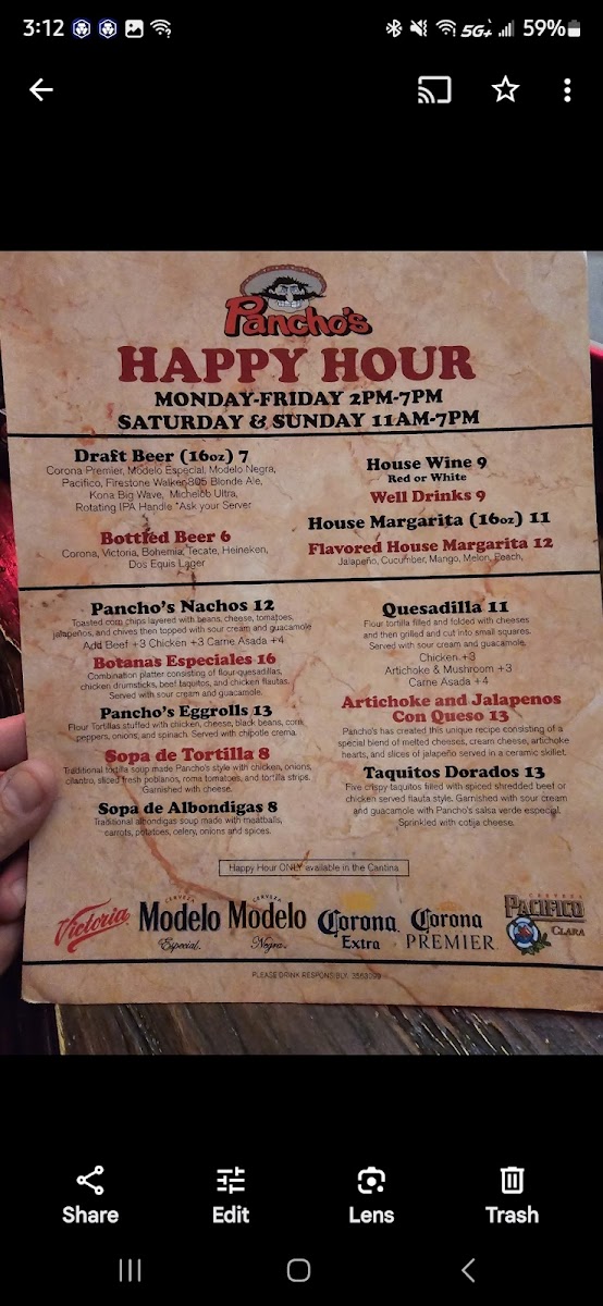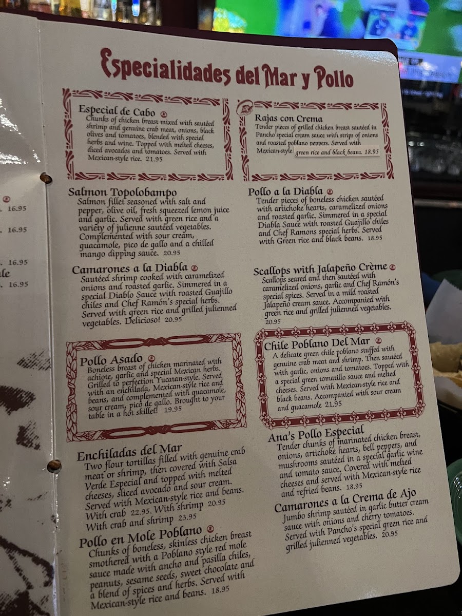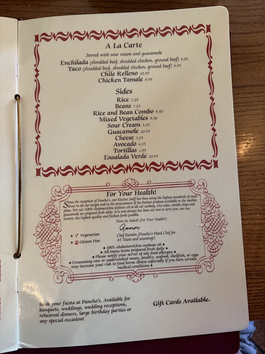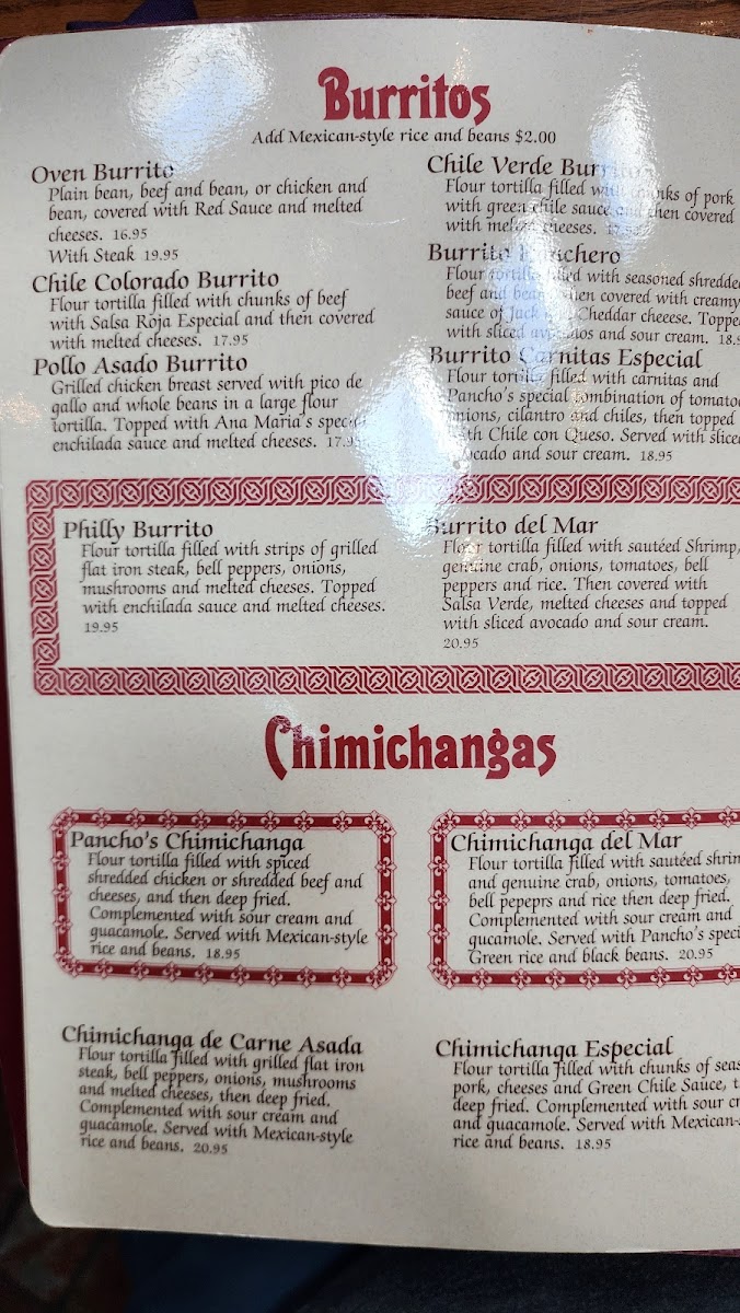 Pancho's Menu